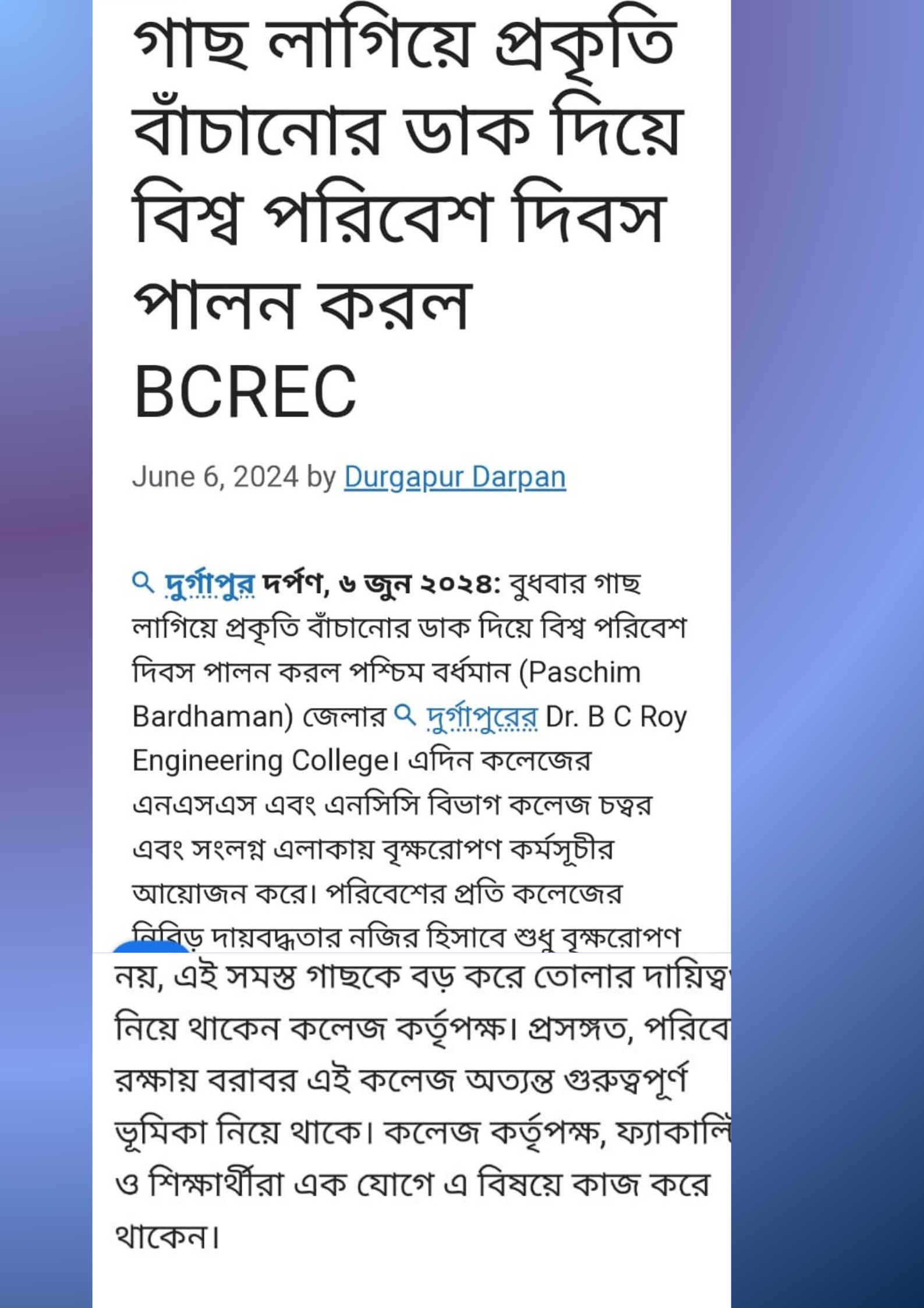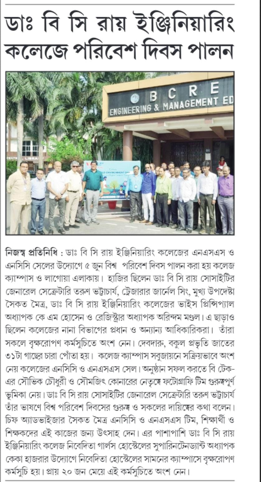 In a remarkable celebration of World Environment Day, the NSS and NCC cells of Dr. B C Roy Engineeri