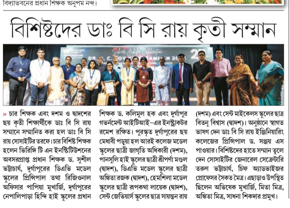 Dr. B. C. Roy Kriti Samman 2025 Honors Environmental HeroesOn June 13, 2025, Dr. B. C. Roy Engineeri