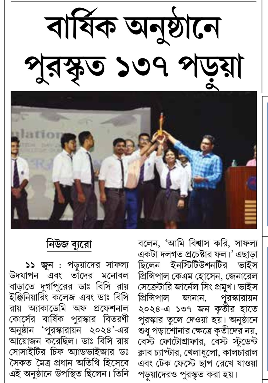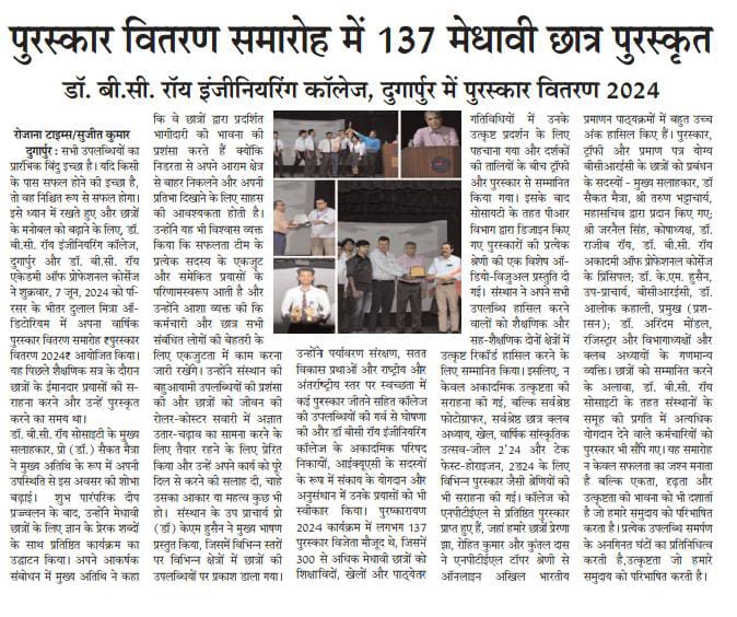 Prize Distribution Ceremony PURASHKARAYAN 2024 at Dr.B.C. Roy Engineering College, Durgapur Durga