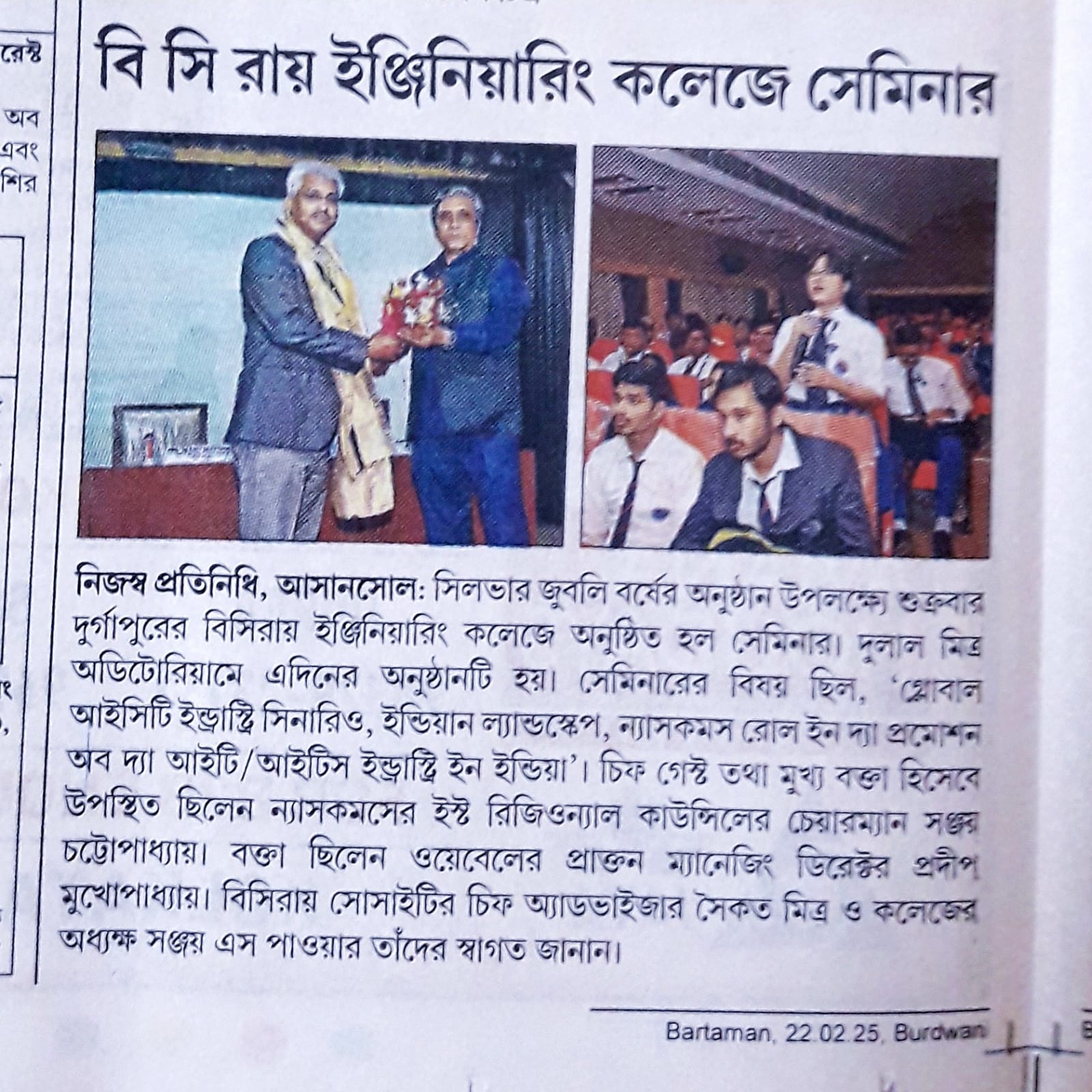 Dr. B. C. Roy Engineering College organised a seminar on "Global ICT Industry Scenario, Indian