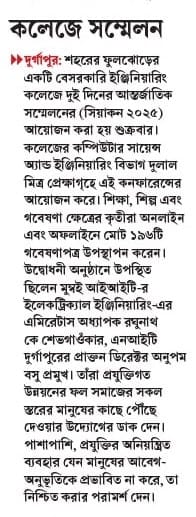 The Department of Computer Science and Engineering of Dr. B. C. Roy Engineering College (BCREC), Durgapur, hosts CIACON 2025 – International Conference on Computing, Intelligence and Application. The conference was inaugurated on 18th July 2025 at the Dulal Mitra Auditorium, BCREC campus. The conference is scheduled for 18th and 19th July, 2025.