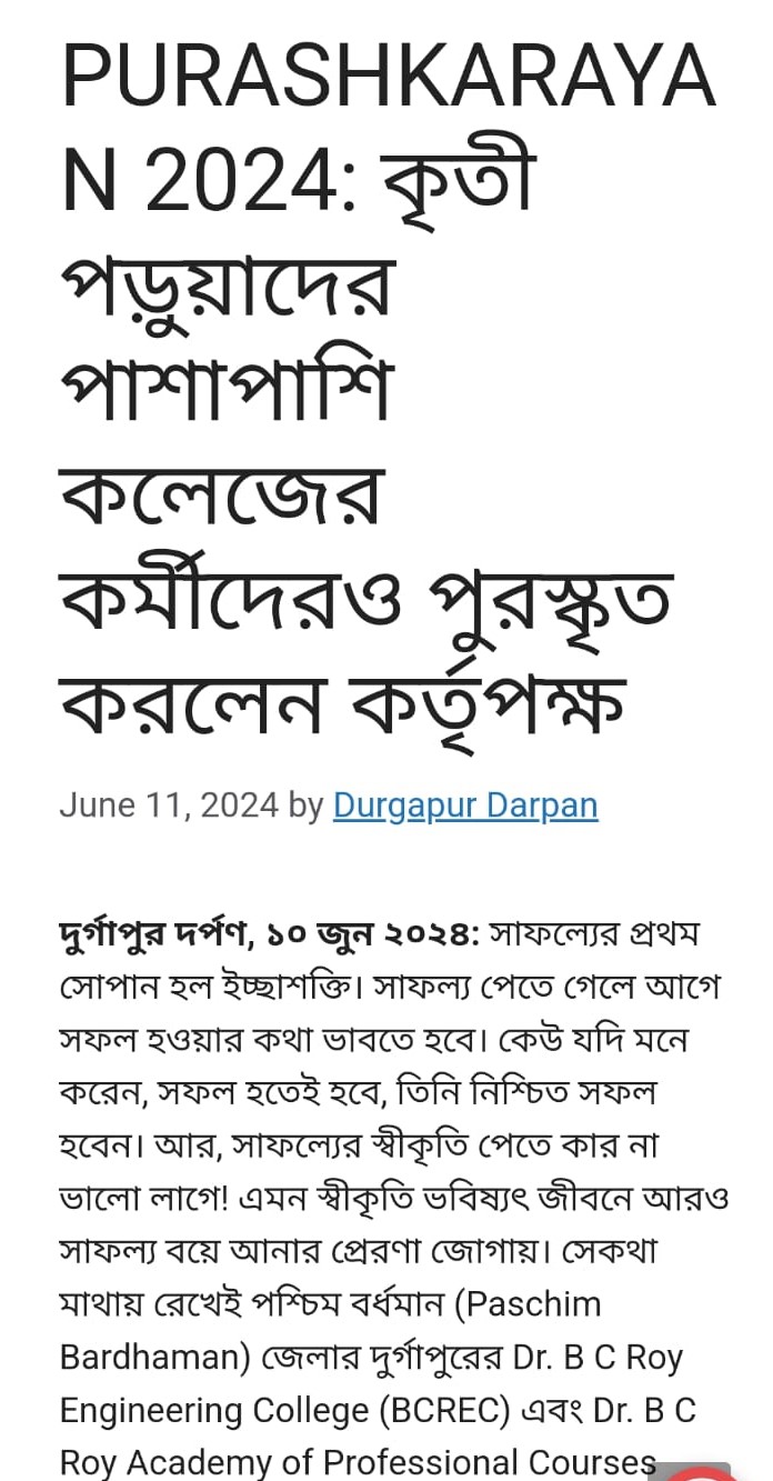 Dr. B. C. Roy Engineering College (BCREC), Durgapur, achieved a major milestone today with