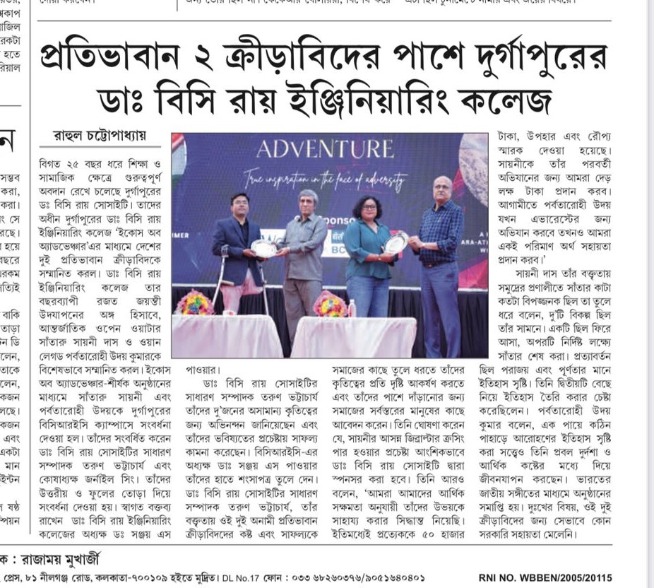 Dr. B. C. Roy Engineering College in Durgapur honored six outstanding sportspersons as part of its s